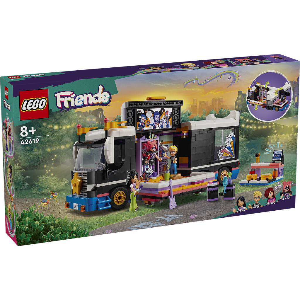 • Tour bus playset toy for musical role play – The LEGO® Friends Pop Star Music Tour Bus set for girls, boys and kids aged 8 plus includes 4 mini-doll characters and lots of accessories
