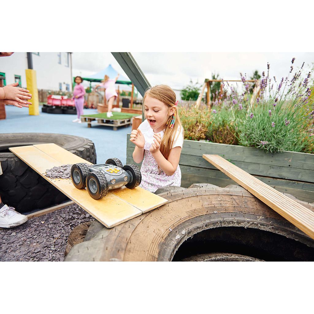 Our first programmable robot designed for outdoor use! Winner of the BETT 2020 award for the best digital device.